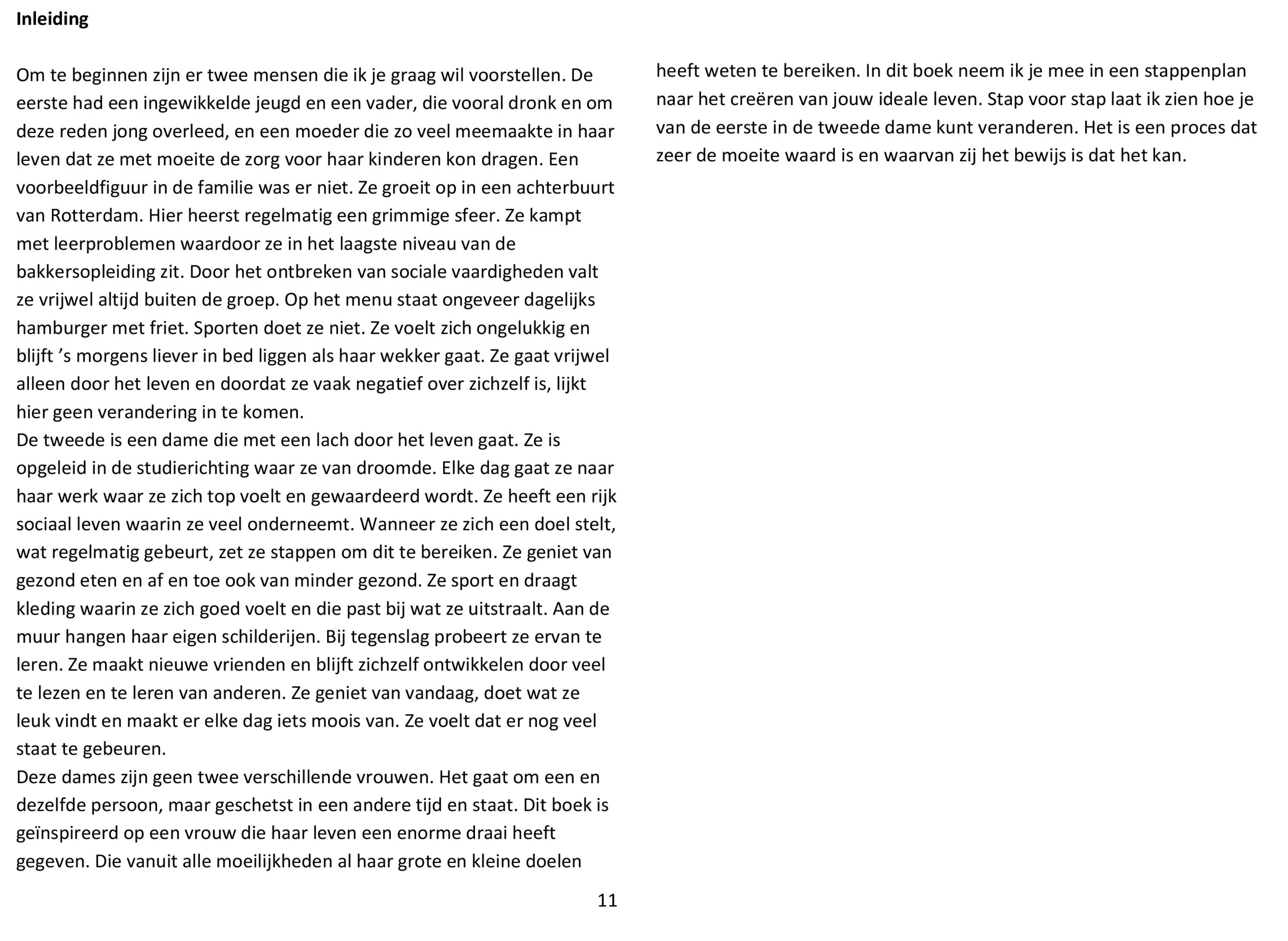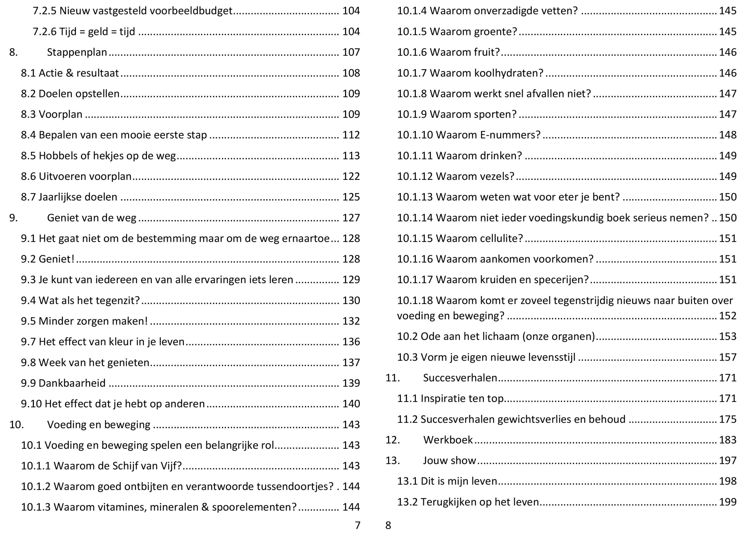 Niet voor niks heb ik destijds voor deze studie gekozen. De thema’s ‘gezond leven, gezond eten en diëten’ staan dicht bij mijn dromen. Daarom zijn ze ook terug te vinden in dit boek. Samen met een afstuderend student en een diëtiste heb ik mensen opgespoord die succesvol zijn geweest in ‘afslanken’. Wat is hun geheim? Hoe hebben ze hun resultaat weten te behouden? Wat heeft het hun gebracht?